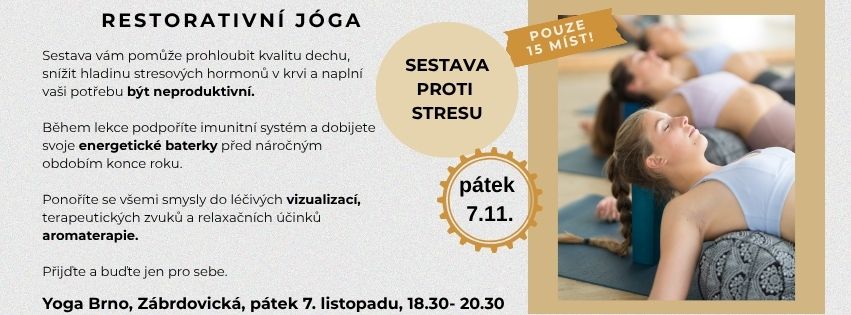 - INDIVIDUÁLNÍ RESTORATIVNÍ LEKCEJemná, pro tělo a mysl obnovující jógová péče. Zahrnuje dechové techniky, ásány, aromaterapii, soundhealing.